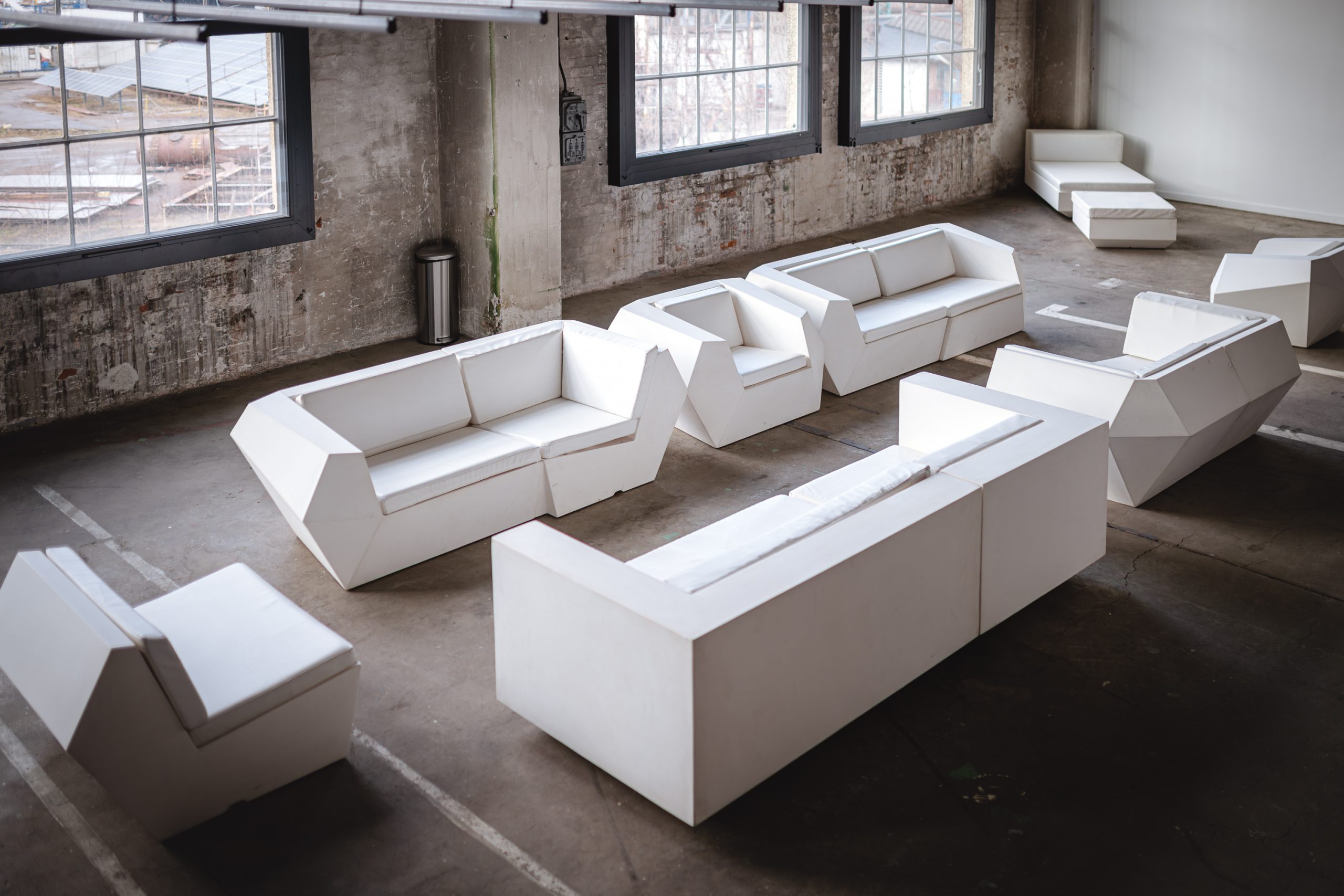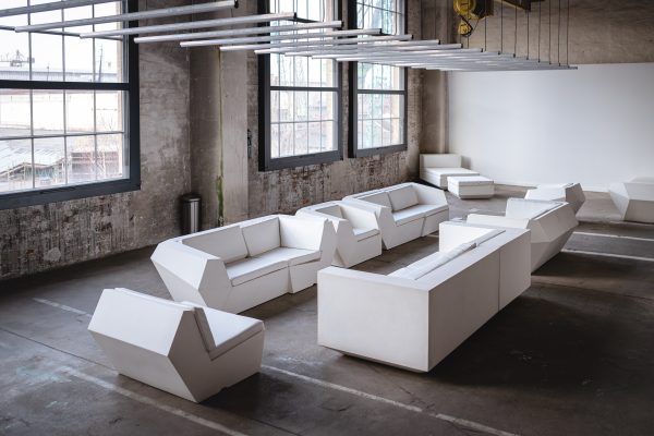 Nowoczesny, geometryczny design – proste linie i elegancka forma sprawiają, że sofa pasuje do luksusowych wydarzeń.